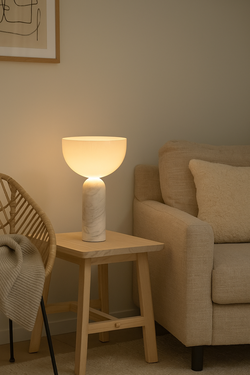 De vloeiende lijnen van de paddenstoelvormige kap zorgen voor een zachte verspreiding van het licht, ideaal voor een gezellige zithoek, een rustige leesplek of als sfeermaker in de slaapkamer. De slanke poot en neutrale kleuren maken de lamp tijdloos én perfect combineerbaar met andere meubels en stijlen.