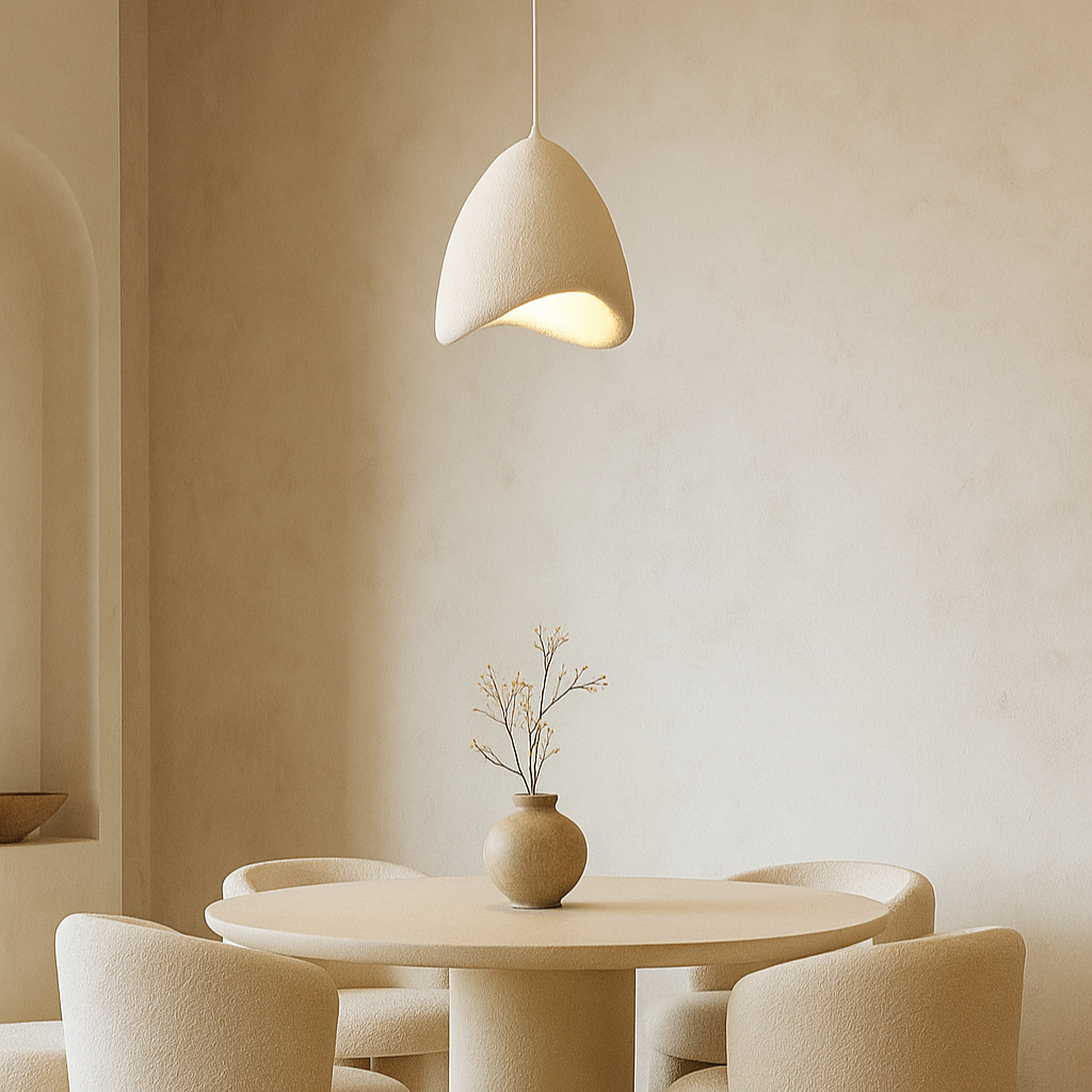 Wabi-sabi hanglampen omarmen imperfectie en natuurlijke eenvoud. Ze zijn vaak gemaakt van organische materialen zoals papier, keramiek of ruwe metalen en stralen rust en karakter uit. Elke lamp is uniek, met subtiele oneffenheden die juist bijdragen aan de charme. Perfect voor een serene, minimalistische sfeer met een Japanse touch.